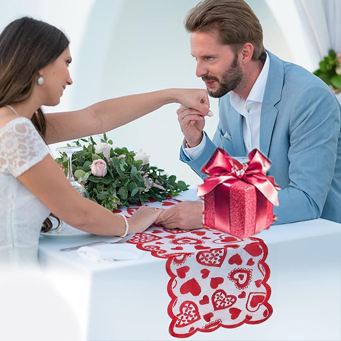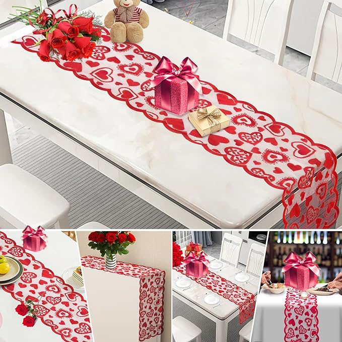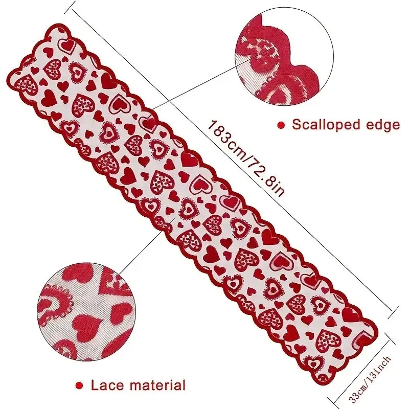 1pc Valentines Day Decorations Table Runner 13 X 72 Inch Lace Heart Table Runner For Wedding Party