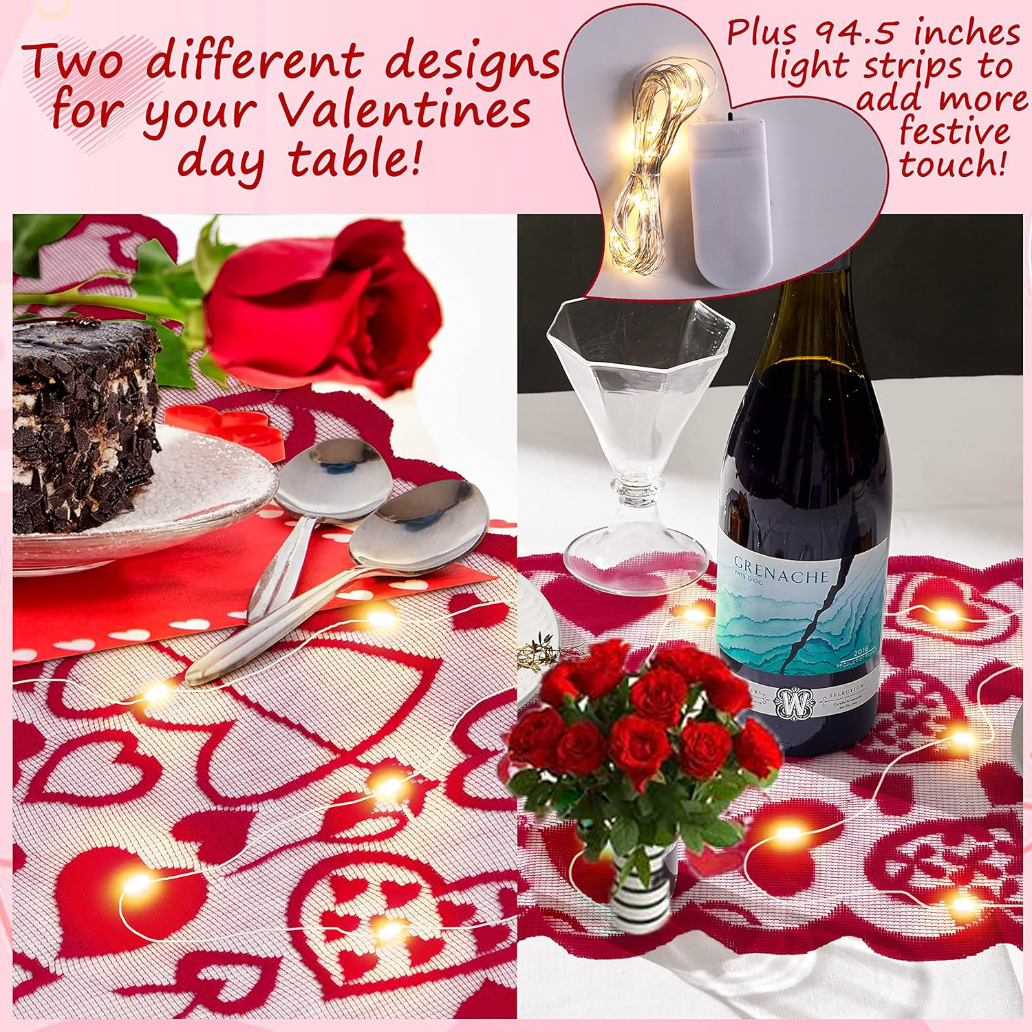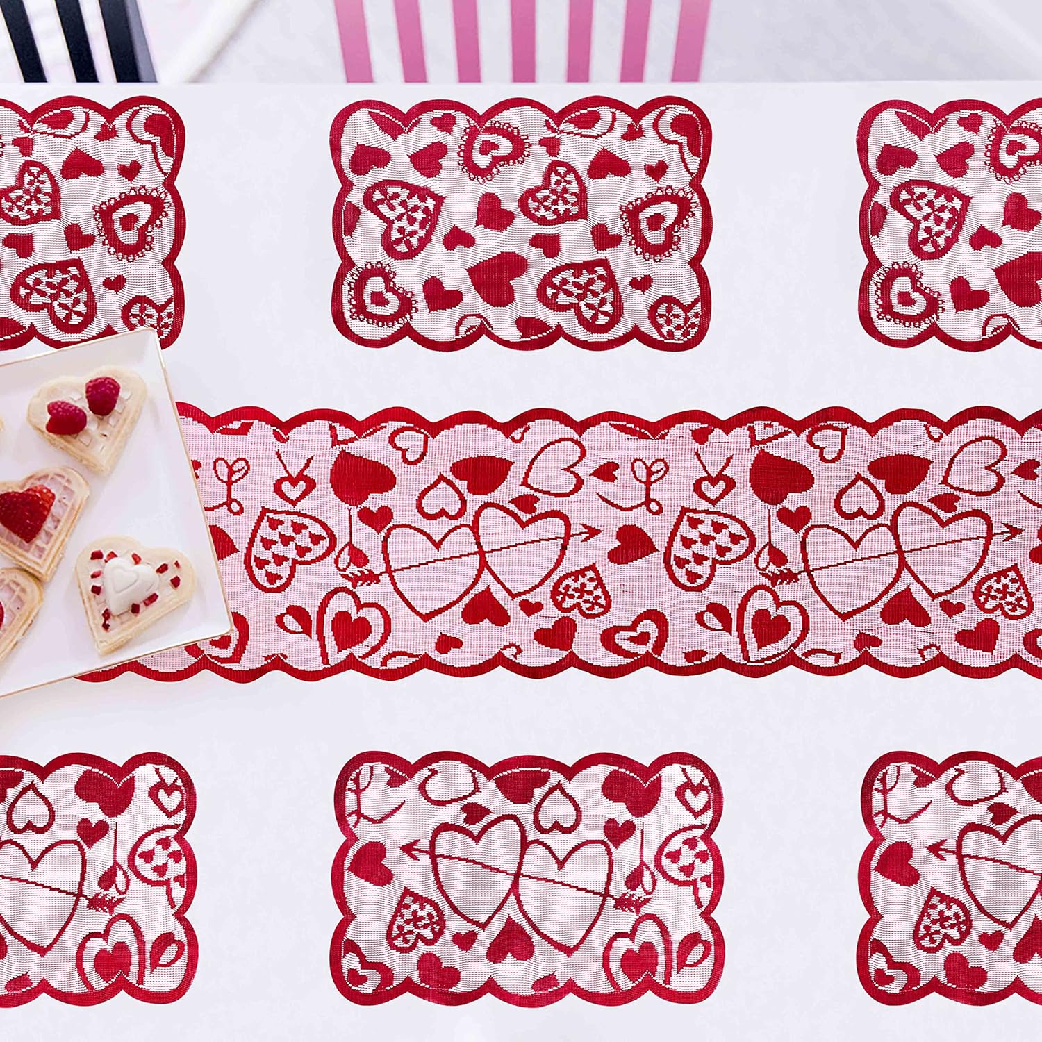 Home > 1pc Valentines Day Decorations Table Runner 13 X 72 Inch Lace Heart Table Runner For Wedding Party