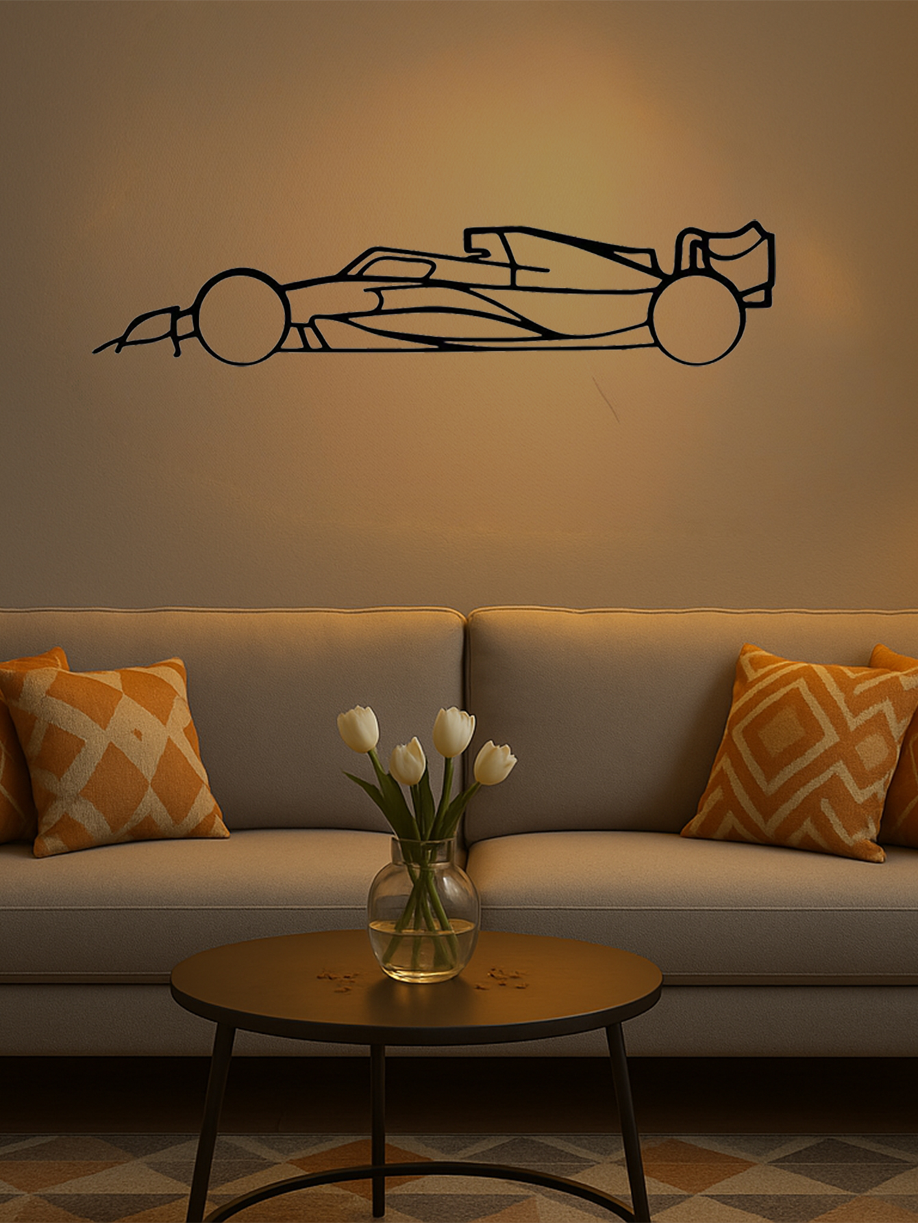 Laser-Cut Metal Wall Art Precise Sports Car Silhouette