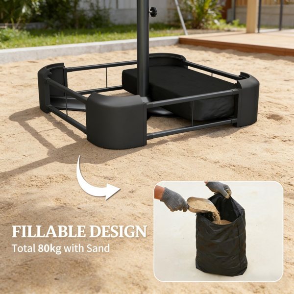 - Fill with 176 lbs sand or 198 lbs wet sand for stability